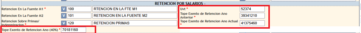 - Acción: Introduce el valor actualizado de la UVT y los nuevos topes de retención definidos para este año